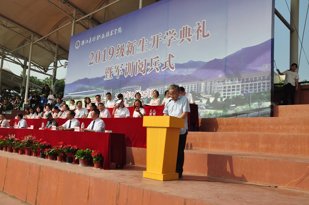 DSC_02442019年9月27日上午,在学校田径场举行2019级新生开学典礼暨军训阅兵式。院长魏贤超教授、党委书记常务副院长王其军教授、副院长杜宝山教授、副院长许迈进教授、副院长高创宽教授,以及各系主任、总支书记和部门负责人参加了仪式,仪式由党委书记、常务副院长王其军主持。