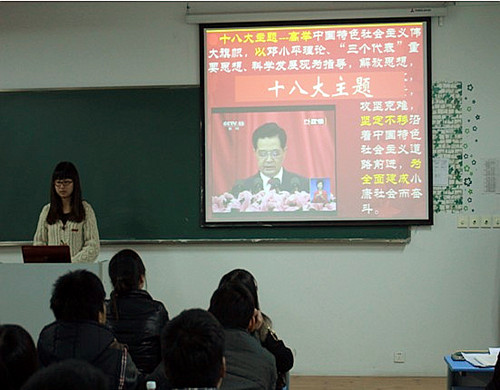 2012年12月9日—11日晚自习,计信系各班举行了主题为“学习十八大精神,争做优秀大学生”的宣讲活动。