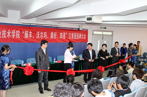 沃尔玛蔡秋秋经理针对订单班培养的方案、计划和内容提出了自己的看法,同时也告诉大家沃尔玛伟大的背后是一个个平凡的人努力出来的。顺丰公司高级经理王建东和鼎好科技营销总监沙汉林介绍了他们的公司和公司内部人员的架构,还有订单班的未来。四喜副总经理陈炎良告诉我们他们公司的宗旨是“不随便招人,不招随便的人,不轻易放弃人。”企业重视人才,需要的不只是管理人员也同样需要大量的基层人员。