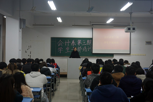 本次培训分别邀请了会计系党总支书记杨军老师,会计系党总支副书记李晓梅老师,会计系团总支书记高计龙老师,会计系辅导员陈敏洁老师担任四次课程的主讲。14日-17日这四天时间里,主讲老师们分别以“学生干部的工作执行力”、“学生干部应具备的团队精神”、“学生干部的创造力”、“学生干部应具备的素质”内容主题与在座学生深入探讨。